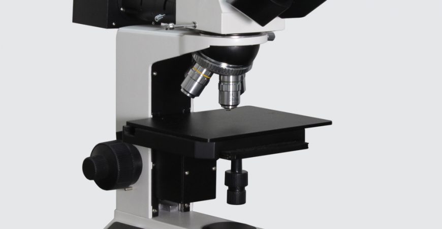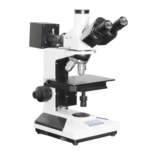 Trinocular vertical metallurgical microscope with plan optics and incident light illumination